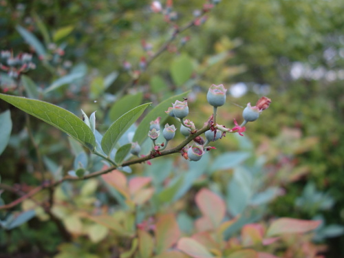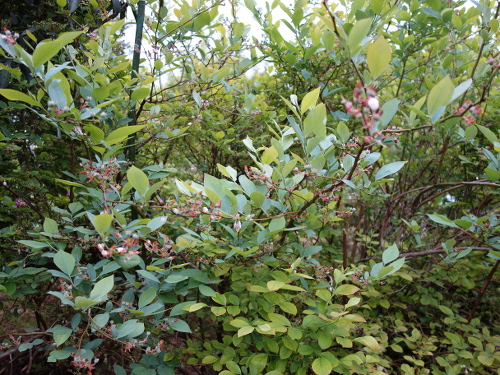 もう1本のティフブルー。他のブルーベリーの蔭になっているせいか、生長が今ひとつです。でも実は生ります。