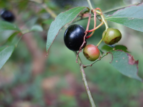 もう1本のティフブルーの木。日蔭なので小さいです。でも、大粒の実が生ります。