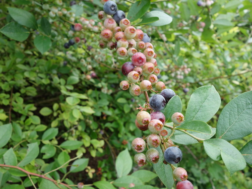 2017年7月1日現在、今年はティフブルーが大粒になり、しかも豊作です。すでにだいぶ収穫しましたが、まだ収穫していない熟れていない実も多いです。