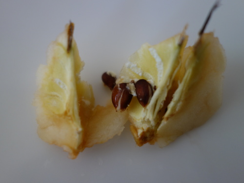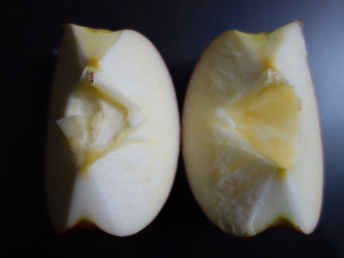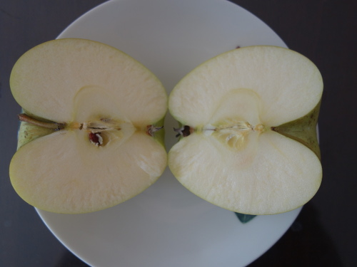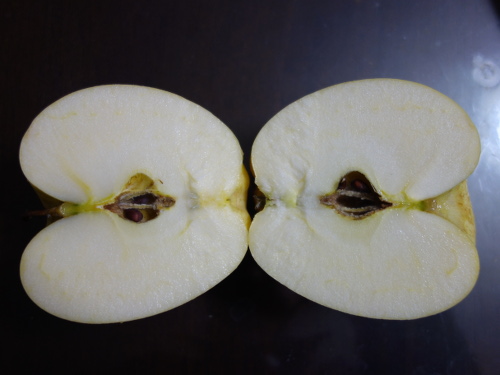 酸味があって、甘かったです。しかし、ぐんま名月ほどの甘さではありませんでした。果肉は軟らかめですが、サンジョナほどではないと思います。1個食べただけで決めてしまうのは性急すぎる感はありますが、個体差がないと仮定するならば、金星よりぐんま名月の方が好みです。でも、あくまでも相対的なものであって、金星も美味しいことに変わりはありません。かなりハイレベルの争いだと思います。