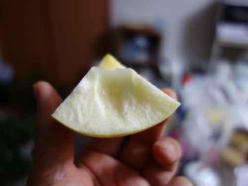 まずはぐんま名月から食べました。いつも皮ごと食べます。酸味があって、とても甘かったです。食感はコリコリしていたと思います。でも、ふじよりは柔らかい感じです。