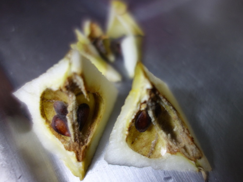 果肉を割った時の表面の様子から柔らかそうに見えます。