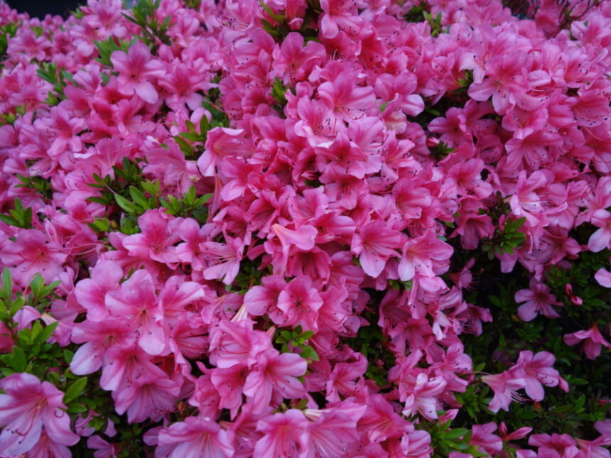マンションの植え込みに咲いているちょっと遅めのツツジ(躑躅)