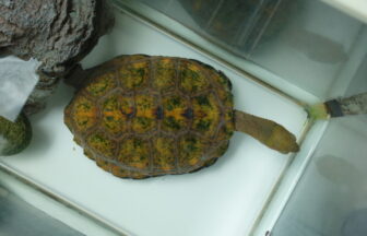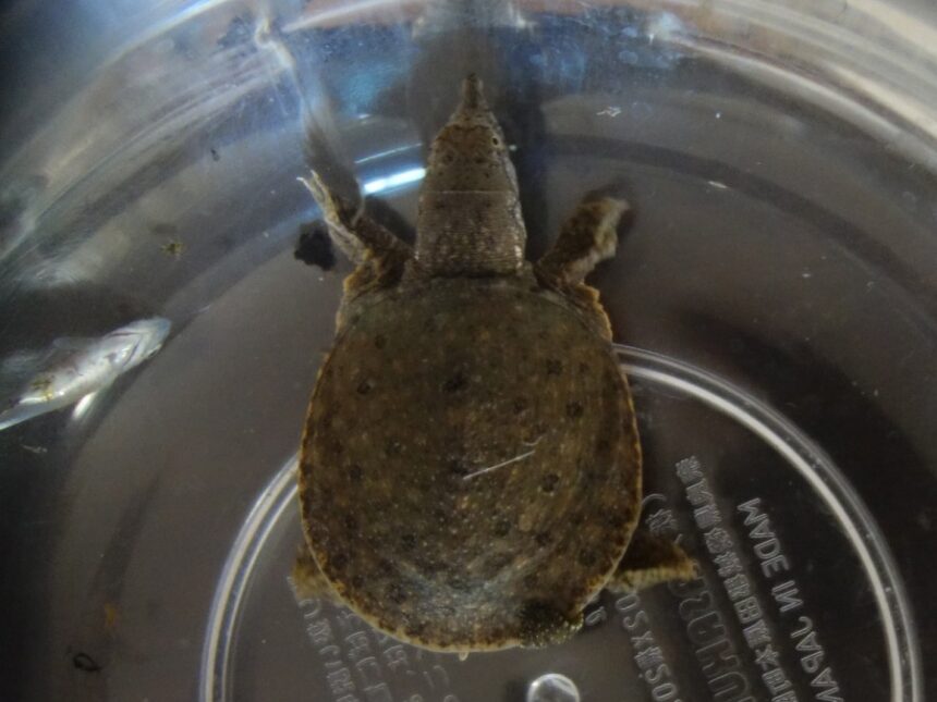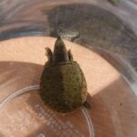 早朝の用水路で保護した歴代1匹目の赤ちゃんスッポンシゲオ。