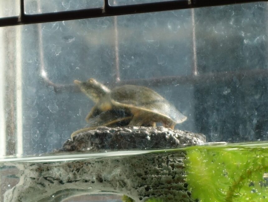 ↑アイキャッチ画像は2024年9月29日に水のなくなりかけた用水路の最後の水たまりの泥の中から救出してから43日目を迎え た2匹の赤ちゃんスッポン。