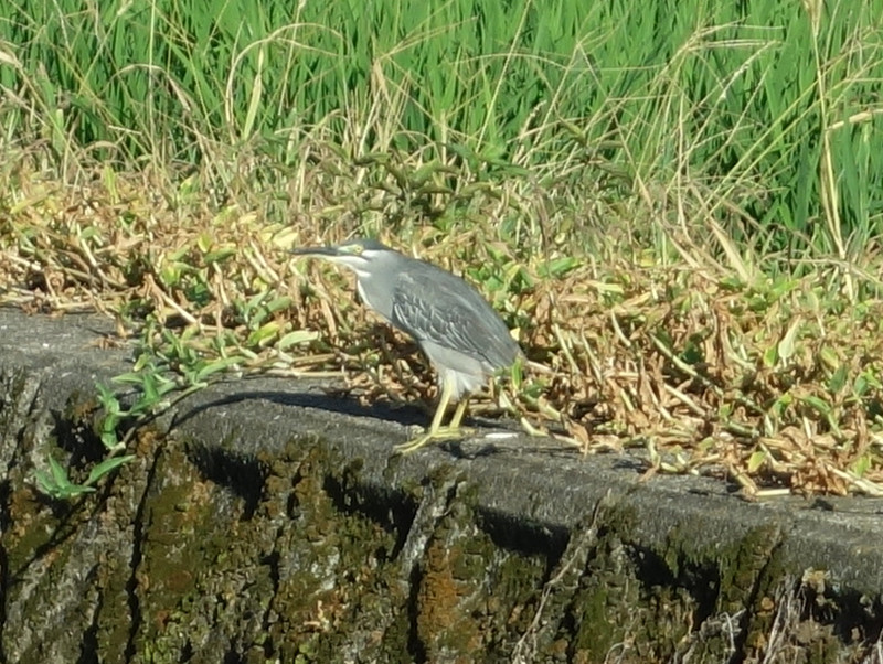 近所の水位の下げられた用水路に1羽のササゴイ(笹五位)がいました。(2023年8月1日17:28撮影)