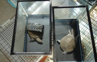 ↑アイキャッチ画像は飼育容器の中の飼育1830日のスッポン♀(左)と飼育749日のスッポン♀(右)。現在の甲長は1…
