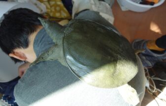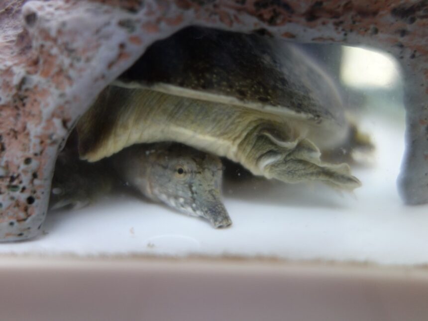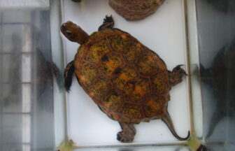 何が何でも下になりたい日齢1289日のスッポン(下)と、それを許容してくれる飼育1270日のスッポン(上)。