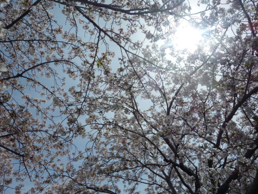 公園の満開のソメイヨシノ(染井吉野)。 (2023年4月1日11:38撮影)