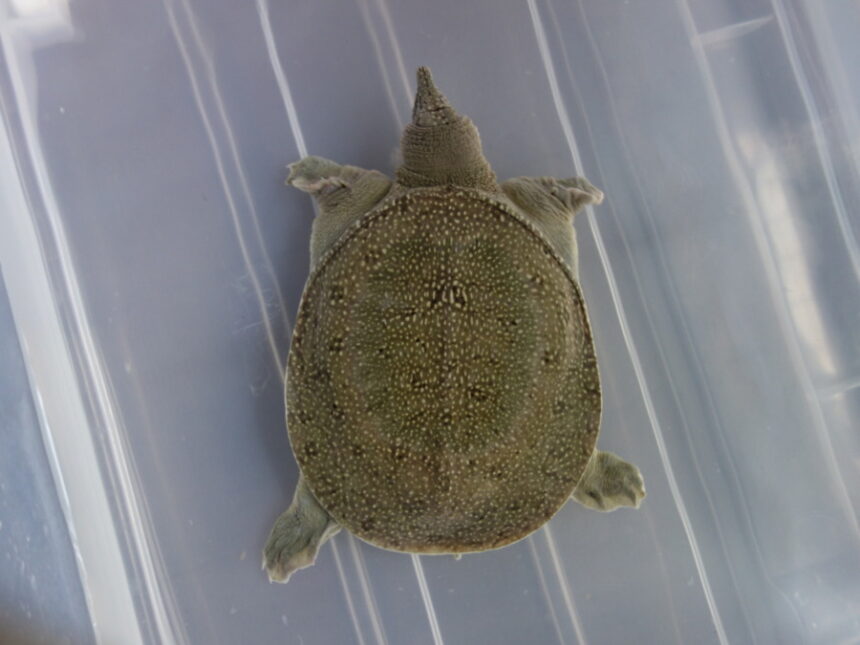 飼育1295日目の背甲が楕円形のスッポン