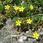 タンポポと同じ場所に生えていたキュウリグサ(胡瓜草)。(2023年4月1日11:31撮影)