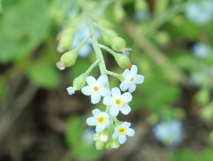 公園に咲いていたキュウリグサ(胡瓜草)の花。