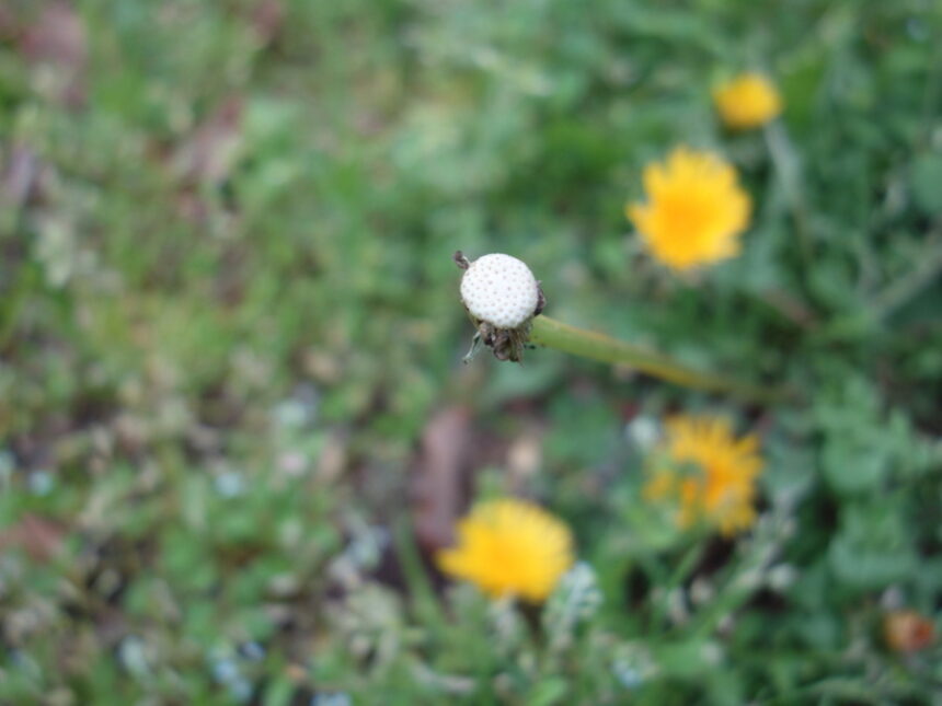 近所の公園に生えていたタネが飛んだタンポポ(蒲公英)。 (2023年3月30日17:04撮影)