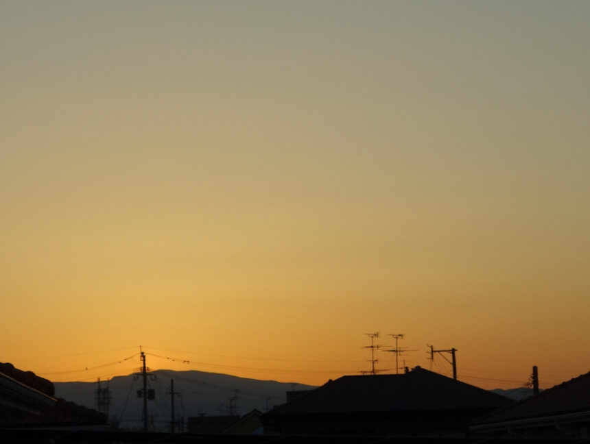 早朝の東の空。 太陽が現れる少し前。 南向きのベランダから東側を撮影。 (2023年4月3日6:14撮影)