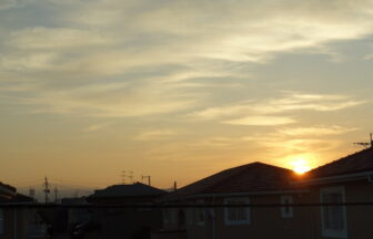 早朝の東の空。民家の屋根の高いところから昇ってくるので、その分遅くなります。今朝は6:36でした。