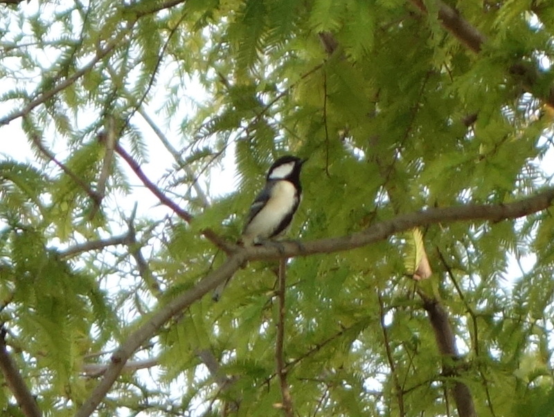 公園のメタセコイアの木の枝に止まっていた1匹のシジュウカラ(2025年9月26日)