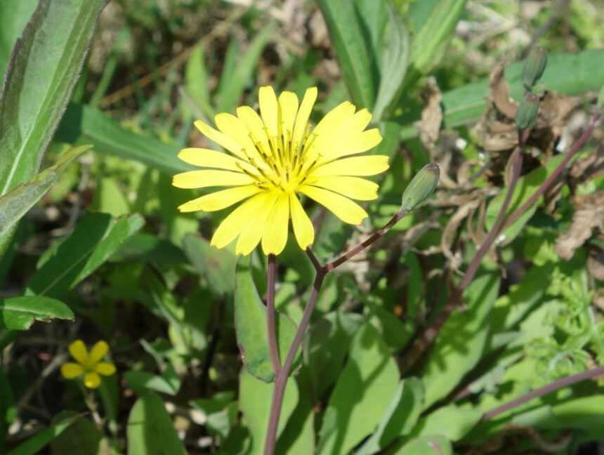 公園の横の土手に咲いていたコウゾリナ(髪剃菜)。