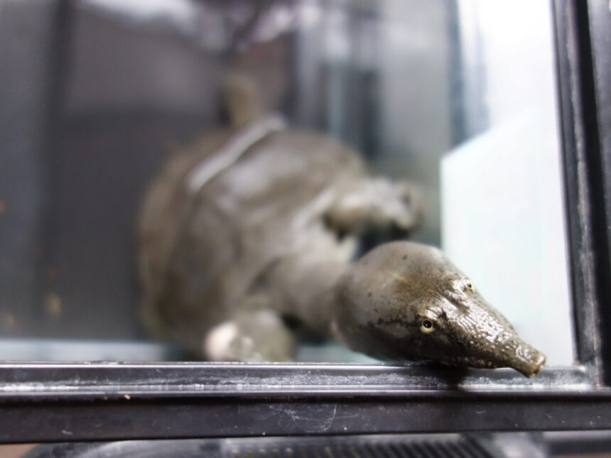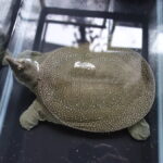 とても人懐こいオスのスッポンです。たぶん私が飼っているスッポンの中では1,2位を争うほどです。右肩の部分を噛んで白くなっています。首を伸ばすと真ん中あたりに噛んだところがありますが、写真ではわかりません。