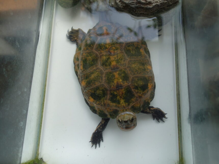 住宅地の側溝で保護した日から数えて今日がちょうど1000日目になるニホンイシガメ♂。