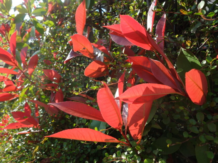 民家の生垣のベニカナメモチ(紅要黐)。