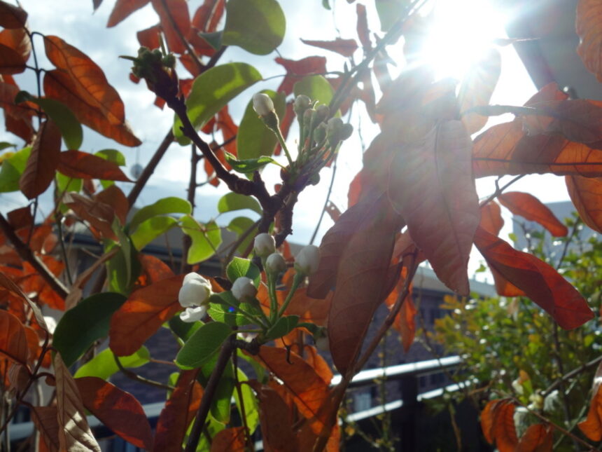 ベランダの鉢植えのラ・フランスの蕾と花。
