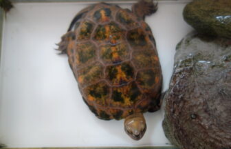 3. 丸くなっている飼育1040日のニホンイシガメ
