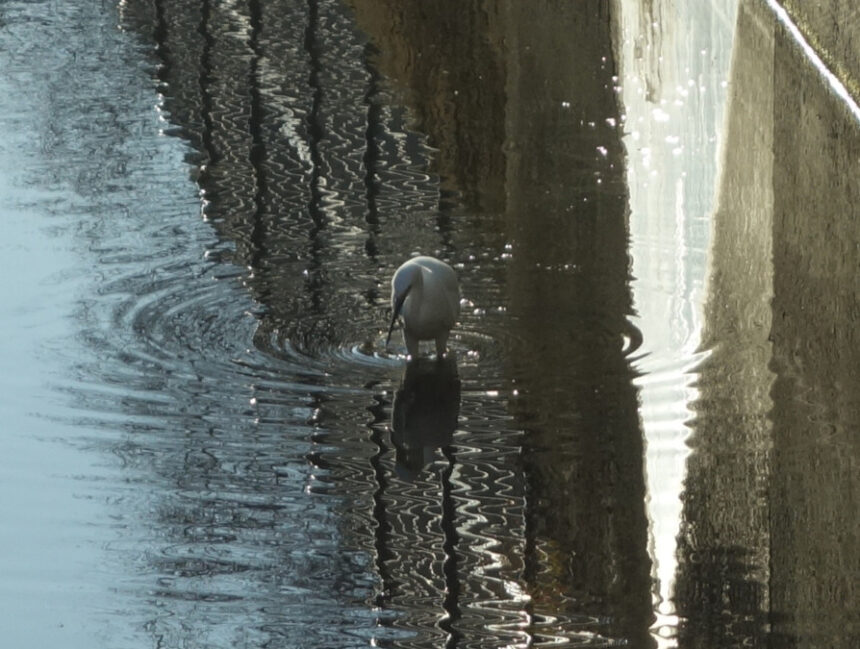 夕方の用水路の浅瀬で漁をしていた1羽のコサギ(2023年3月13日17:07撮影)