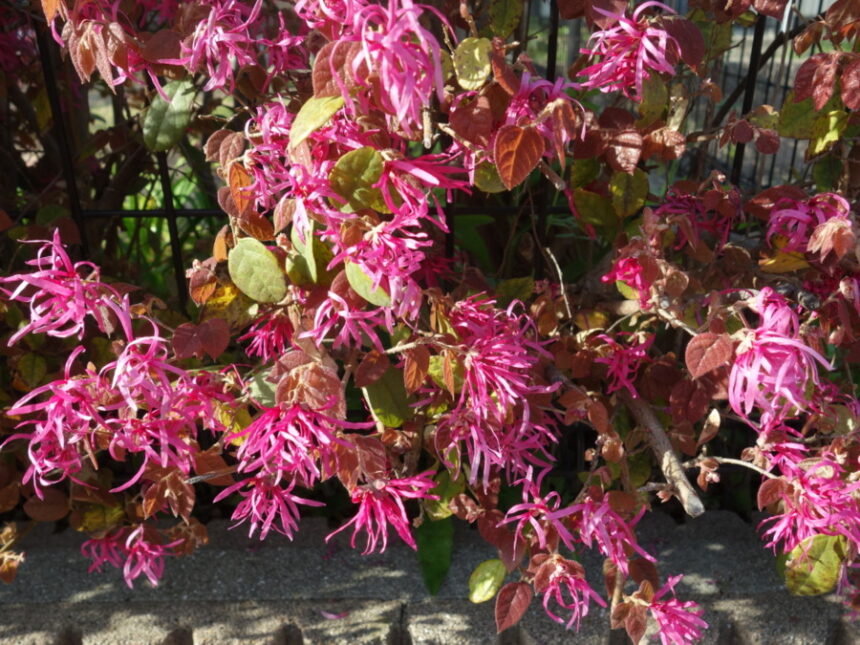 近所の民家の生垣のトキワマンサク(常盤万作) (2023年3月27日16:34撮影)