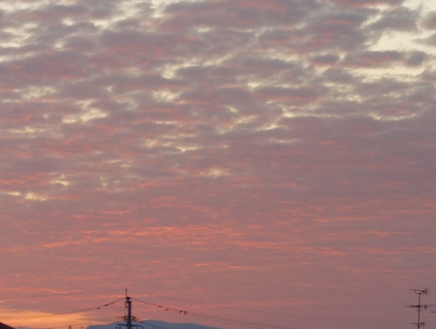 早朝の東の空の朝焼け。 南向きのベランダから東側を撮影したものです。 (2023年4月1日6:06撮影)