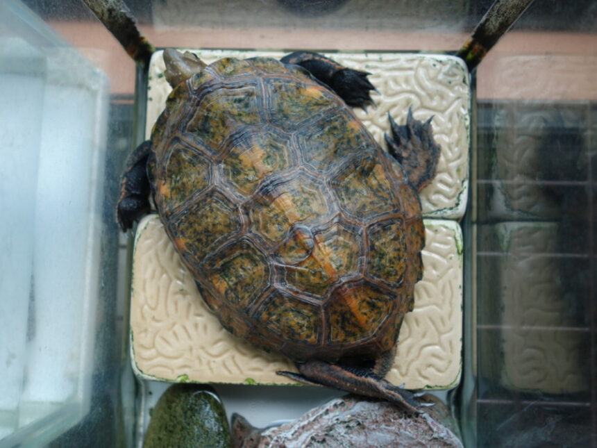甲羅干ししながらこちらを見ている飼育1165日目のニ…