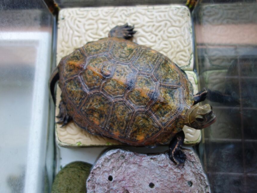 頭に白いものが付いている飼育1147日目のニホンイシガメ