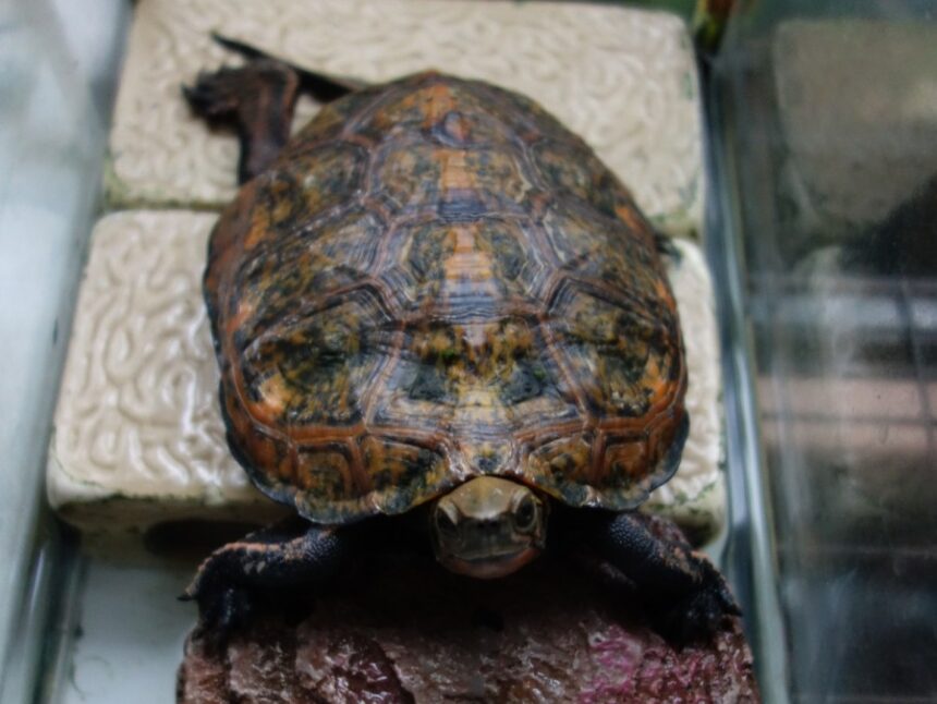 飼育1161日目のニホンイシガメがこちらを見ています。(2023年9月21日9:47撮影)