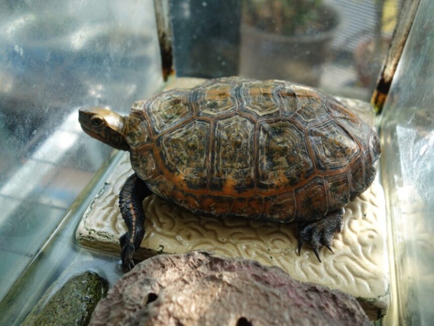 脱皮しかけている飼育1230日目のニホンイシガメ