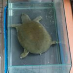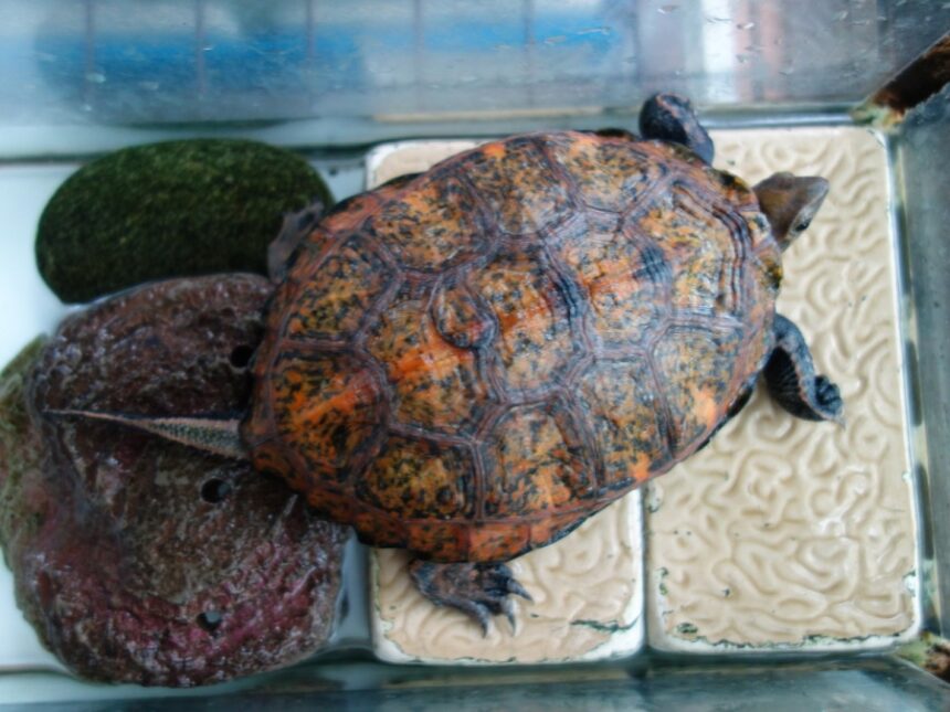 陸地に上がっている飼育1538日のニホンイシガメ。甲長は13cm。