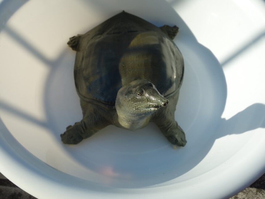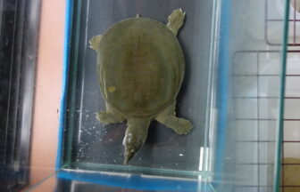 ↑アイキャッチ画像は夕方の10分間の日光浴をほぼ終えた日齢1823日のスッポン♀。