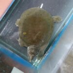すぐに近寄ってくる日齢1847日の5匹のうちいちばん大きいスッポンペンタ♀。現在の甲長23cm。