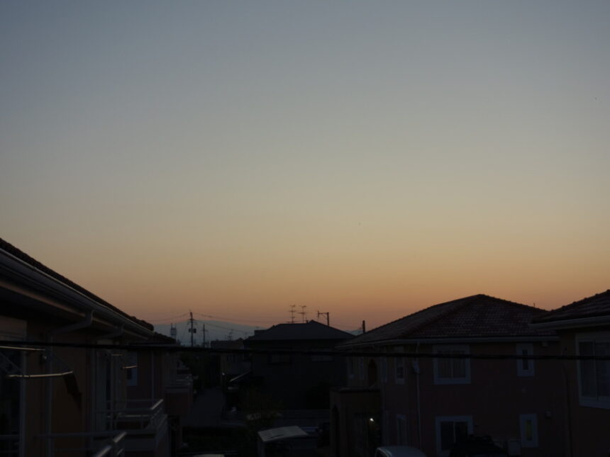 2023年10月18日の早朝のベランダから見えた東の空。(2023年10月18日6:13撮影)