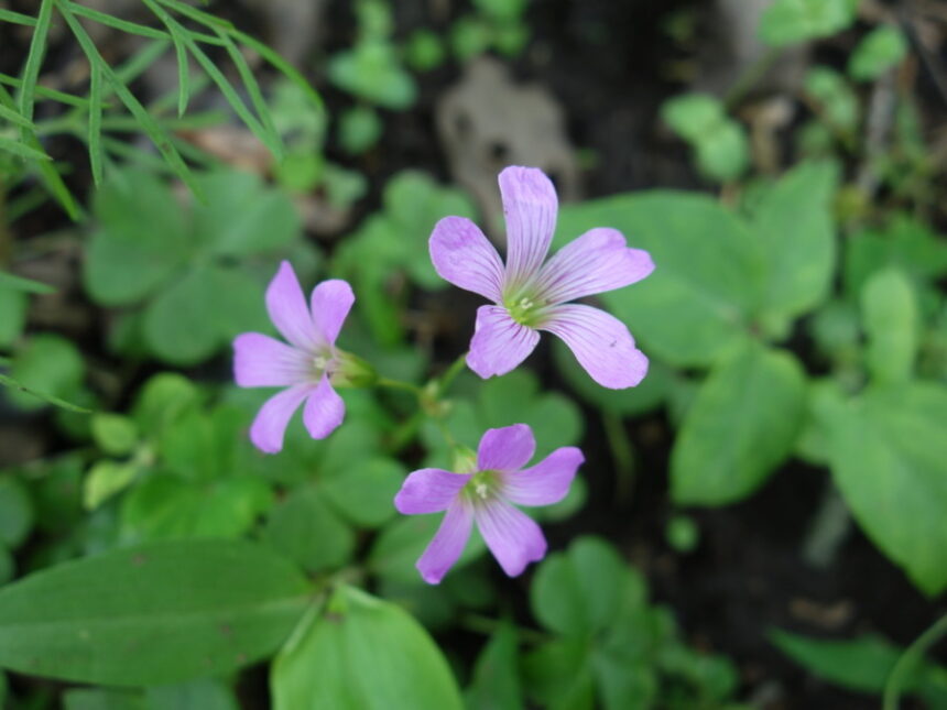 実家の畑に咲いていたムラサキカタバミ(紫片喰)の花。
