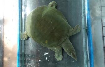 日齢1417日目の5匹のCHスッポンのうち、最も成長しているペンタ♀。体色が緑色っぽくなっています。