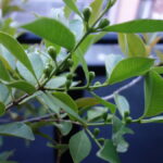 シー クヮーサーの実実が少し大きくなりました。生理落果のため全体的に数は少なくなりました。(2023年5月23日18:51撮影)