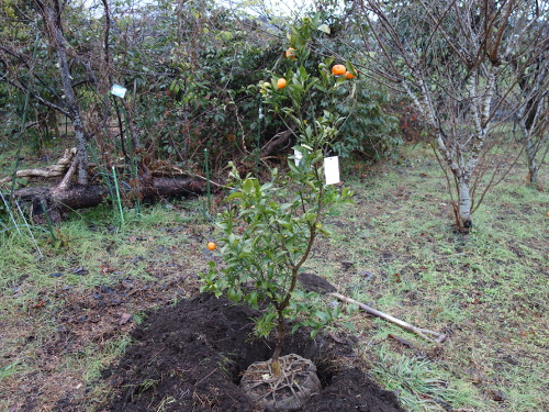 まだまだ寒い2017年2月5日ですが、地植えしました。まずはこの冬を乗り切ってほしいです。この苗木がこれまでビニールハウスとかのあまり寒くない環境で栽培されていたのであれば、今回植えた場所での寒さに耐えられないかもしれません。でも、この冬を乗り切ることができるようであればその後も成長していくことができそうです。そういう意味ではある程度木が大きくなるまで大寒波は来てほしくありません。まずはこの2月を乗り切らなければ先はありません。