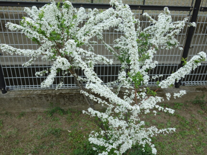 近所の公園のユキヤナギ(雪柳)の花(2023年3月12日16:55撮影)