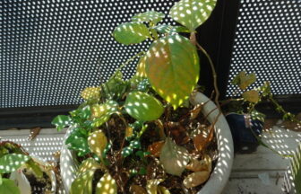 ベランダの柿の実生苗の紅葉した葉っぱ