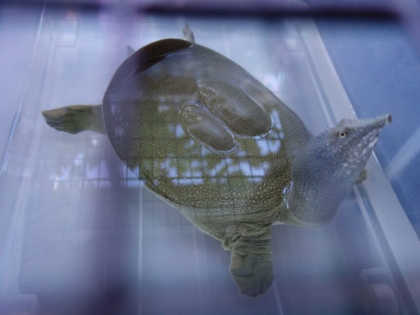 ↑アイキャッチ画像は早朝に伸びをしている飼育1436日目のシナスッポン♀。