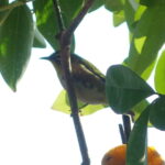 ベランダもバンジロウの木の枝にみかんを切ったものを置いておくと喜んで食べに来る2羽のメジロのうちの1羽。(2024年12月31日14:17撮影)