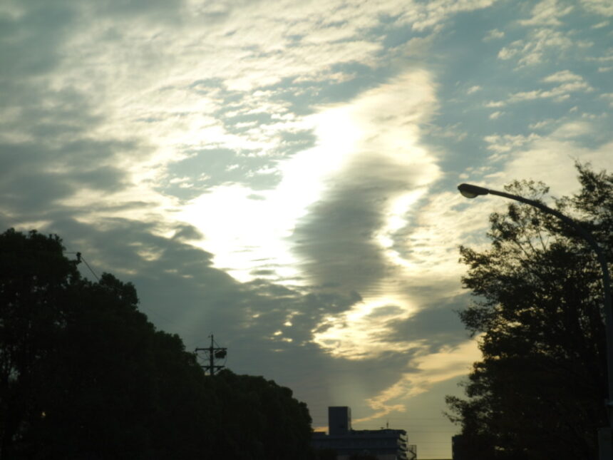 夕方のウォーキングの帰りに見えた西の空。(2023年10月4日17:14撮影)