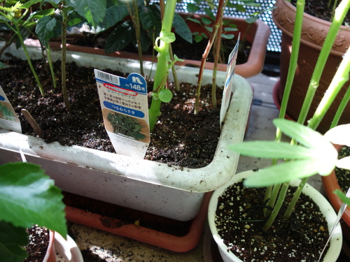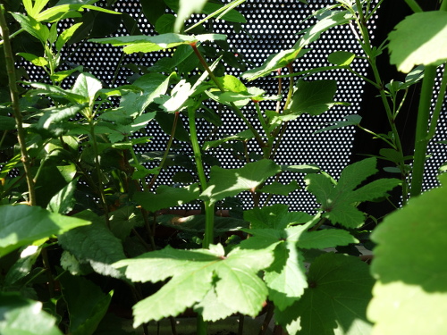 写真のピントが合っていませんが、茎はこれだけしか伸びませんでした。今年の赤オクラの栽培は失敗でした。しかし、このプランターで育てたローゼル2本はかなり繁りました。養分が取られたのかもしれません。あるいは連作障害があったかもしれません。
