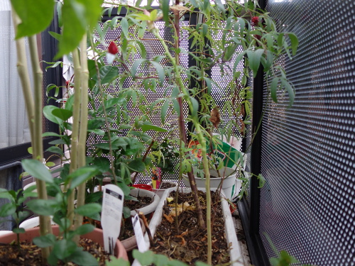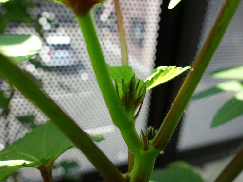 2016年10月4日、実を収穫して木を処分しました。この赤オクラは間引きして最終的に1本に絞ったのですが、生長しませんでした。間引きせずに育てた島オクラ4本の方がかなり大きくなったので、こういうケースもあるのだなと思いました。今後に生かそうと思います。