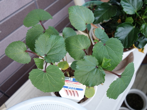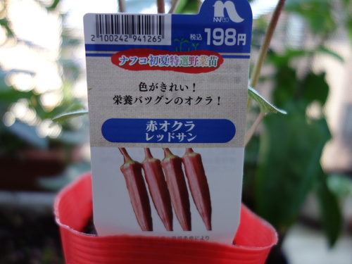 ナフコからレッドサンという赤オクラの苗をポリポットで1個買ってきました。苗は4本ありました。