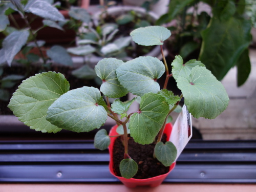 茎にアントシアニンの赤色が出ています。日光が当たると赤色になります。
